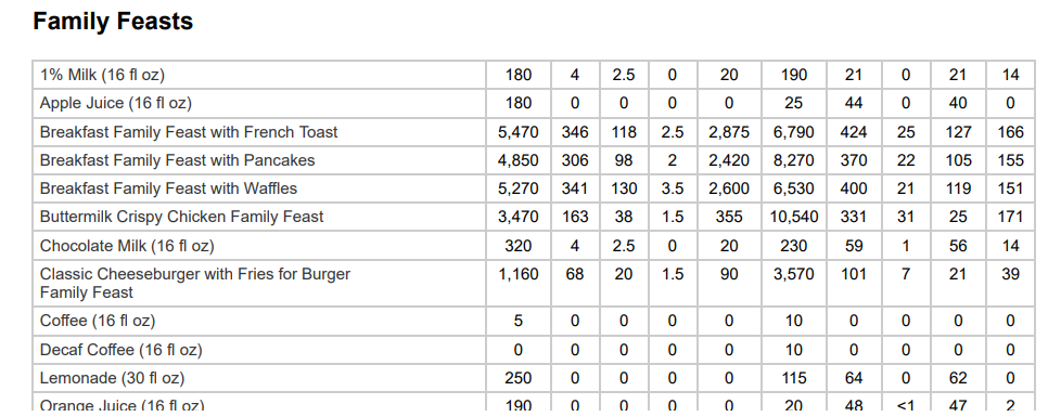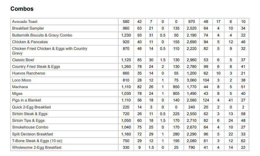 🍔IHOP Combos Nutrition Facts
