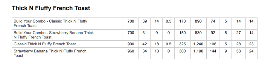 🍞IHOP Thick N Fluffy French Toast Nutrition Facts