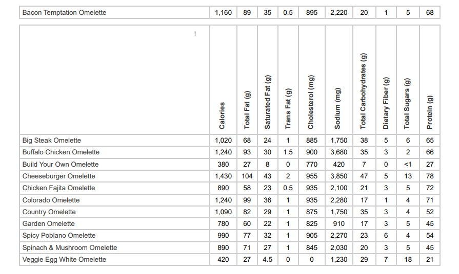 🍳IHOP Omelettes Nutrition Facts